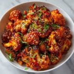When your cauliflower is perfectly roasted, remove it from the oven and transfer everything to a large bowl. Pour your luscious sweet and spicy sauce right on top and gently toss to ensure every floret is drenched in flavor. Serve immediately so you can enjoy the full tension between crispy edges and sticky, flavorful sauce.