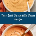 This Taco Bell Quesadilla Sauce is a creamy, mildly spicy condiment perfect for adding a flavorful kick to quesadillas, tacos, nachos, or fries. Made with a blend of mayonnaise, sour cream, and fragrant spices including paprika, cumin, and garlic powder, it delivers a balanced smoky heat with a hint of tanginess from pickled jalapeño juice. Quick to prepare and easy to refrigerate, this copycat sauce is a versatile addition to any Mexican-American meal.