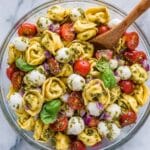 A simple sprinkle of fresh basil leaves is perfect for this Tortellini Pasta Salad Recipe, but you can also add a few shavings of Parmesan cheese or a twist of cracked black pepper on top. These little touches elevate the presentation and enhance the flavor in a subtle way that guests will notice and appreciate.