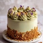 This Vanilla Bean Pistachio Cake is a moist and flavorful dessert featuring a classic vanilla bean cake layered with rich, creamy pistachio frosting. Perfect for special occasions or a delightful treat, it combines the aromatic sweetness of vanilla with the nutty essence of pistachio in a beautifully frosted two-layer cake.