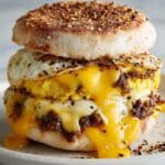 This Viral Egg Sandwich Muffin recipe features perfectly cooked spiced eggs nestled inside toasted English muffins with melted cheddar or Swiss cheese. Ready in just 15 minutes, it’s a delicious and comforting breakfast sandwich with a warm blend of cinnamon, nutmeg, allspice, and cloves that add a unique twist to classic eggs and cheese.
