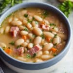 This hearty Ham and Bean Soup combines tender Great Northern beans with smoky ham hocks and savory vegetables. Slow-simmered to perfection, it delivers rich, comforting flavors perfect for chilly days. With wholesome ingredients and a simple preparation method, this soup is a soul-warming, satisfying meal that makes excellent use of leftover ham.