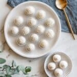 - Coat: Roll each ball in white sprinkles, shredded coconut, or powdered sugar for coating.