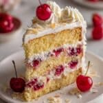This cake pairs wonderfully with a simple fruit salad or a scoop of vanilla ice cream, which complements the cake’s creamy texture without overwhelming the delicate cherry and white chocolate flavors. A cup of freshly brewed coffee or tea rounds out the perfect dessert experience.