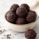 Pair these bliss balls with a refreshing cup of herbal tea or your favorite coffee for an energizing snack break. They also work wonderfully alongside a fresh fruit salad, which adds juiciness and bright notes that contrast the rich chocolate beautifully.